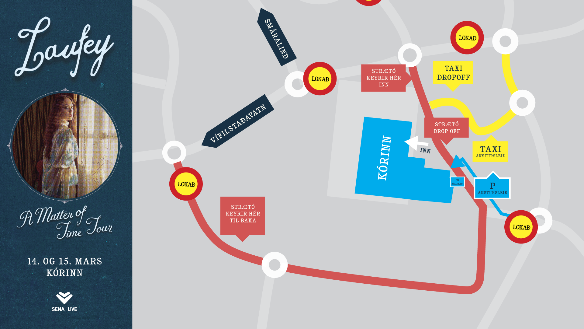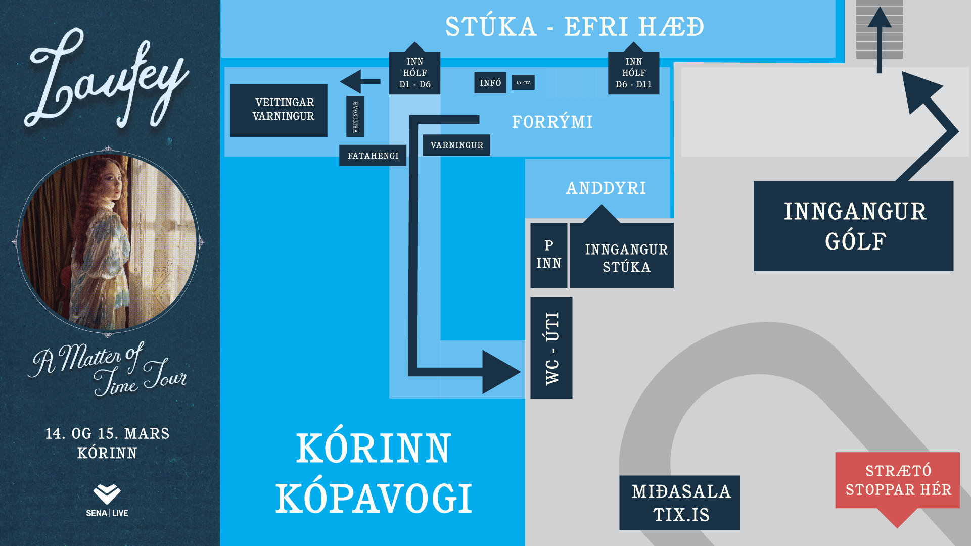 Þar sem Kórinn er staðsettur í miðju íbúðahverfi verða götulokanir á svæðinu frá kl. 15:30 – 00:00 báða daga, helgina 14. og 15. mars.