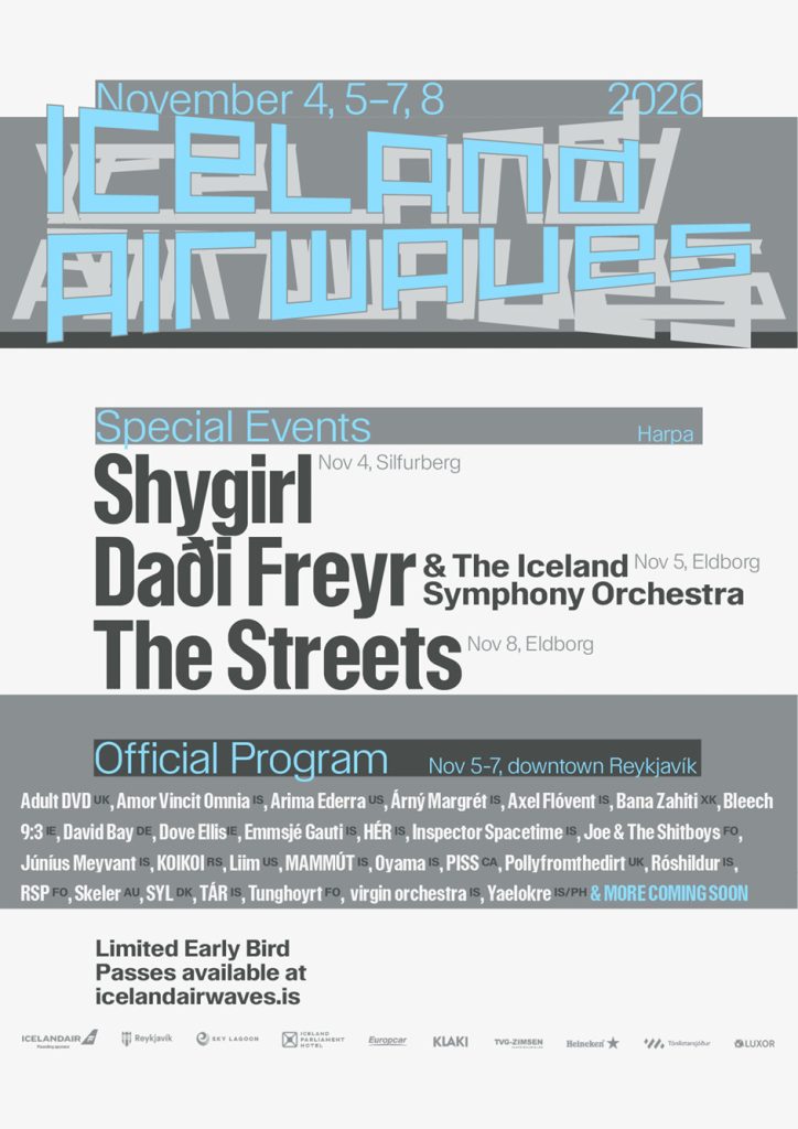 Árið 2026 fer formleg dagskrá Iceland Airwaves fram dagana 5. – 7. nóvember í miðborg Reykjavíkur og það borga sig alltaf að kaupa miða strax, áður en verðið hækkar!